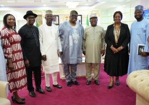 Photo news of the Hon. Minister of Works, Sen. Engr. Nweze David Umahi, the Deputy Managing Director Nigeria Liquefied Natural Gas Limited, (NLNG) Olakunle Osobu, the Director Highway Bridge and Design, Engr. Musa Saidu, and others during a courtesy visit to the office of the Hon Minister of Works at the Ministry Mabushi on 22nd January, 2026.